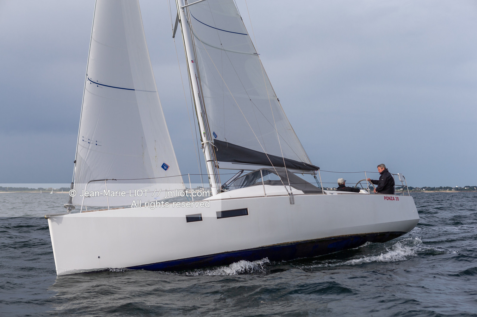 Essai du nouveau Ponza 35 dans la baie de Quiberon au large de la Trinité sur mer, le 18 avril 2019. Photo © Jean-Marie Liot.