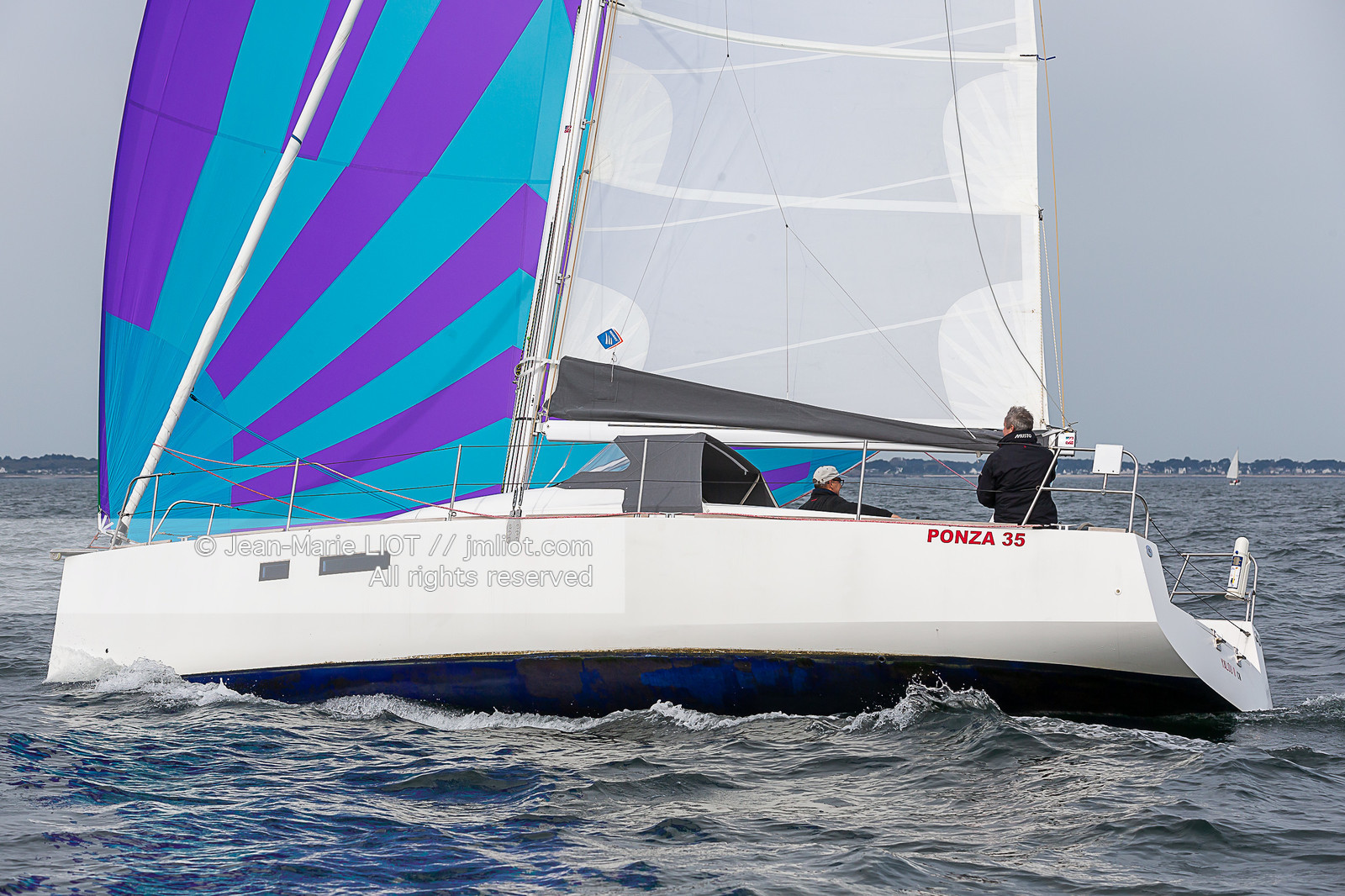 Essai du nouveau Ponza 35 dans la baie de Quiberon au large de la Trinité sur mer, le 18 avril 2019. Photo © Jean-Marie LIOT - www.jmliot.com.