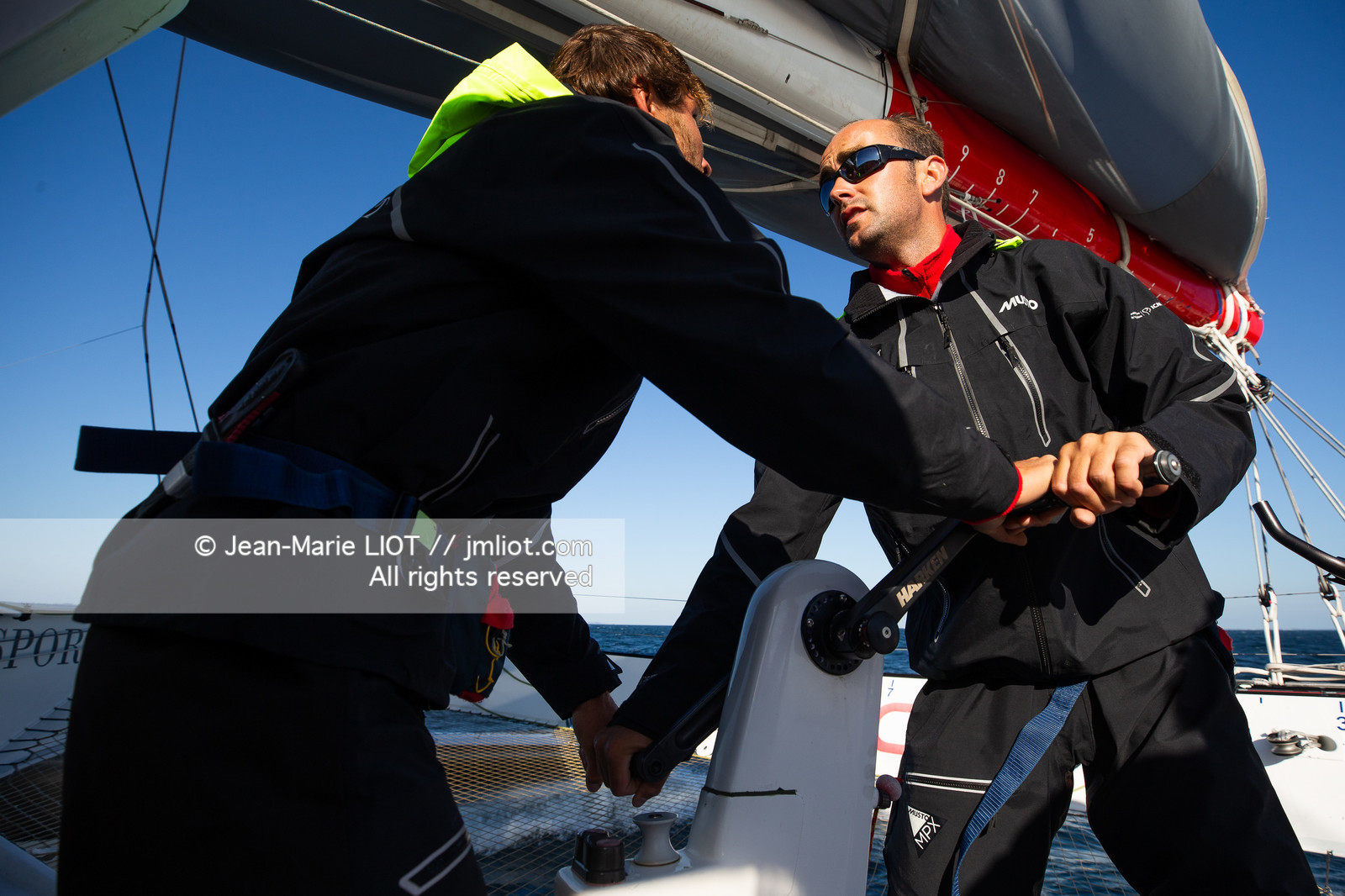 | Description | Francis Joyon et son équipage à bord de l’Ultim IDEC Sport avant le départ de l'Asian Tour 2019-2020, le 18 septembre 2019, Photo © Jean-Marie LIOT / AleA. |