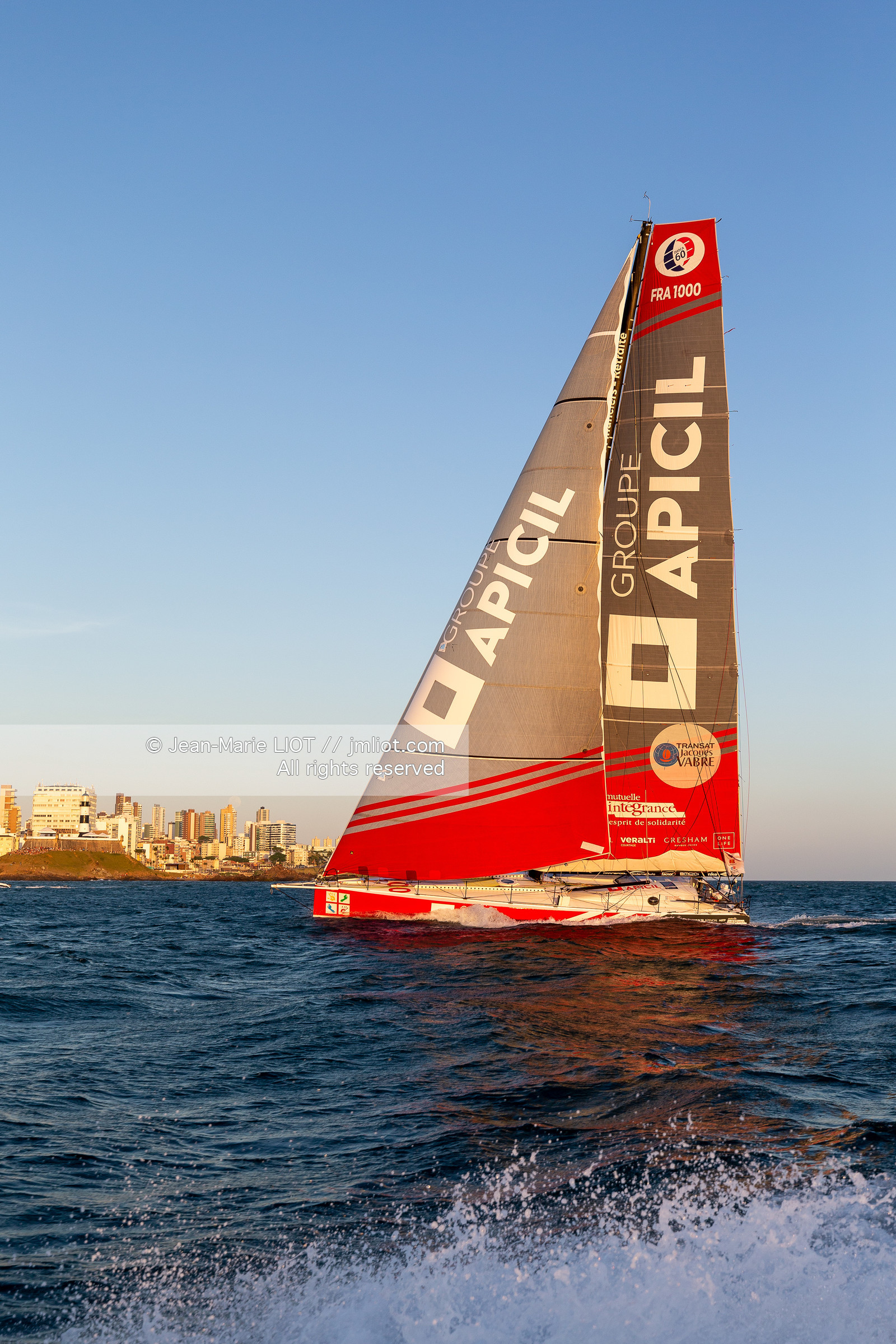| Description | .Transat Jacques Vabre 2019, arrival at Salvador de Bahia, Damien Seguin and Yoann Richomme aboard the Imoca Groupe Apicil. November 11, 2019.Photo © Jean-Marie Liot / Alea |
